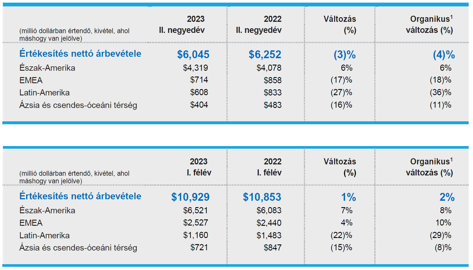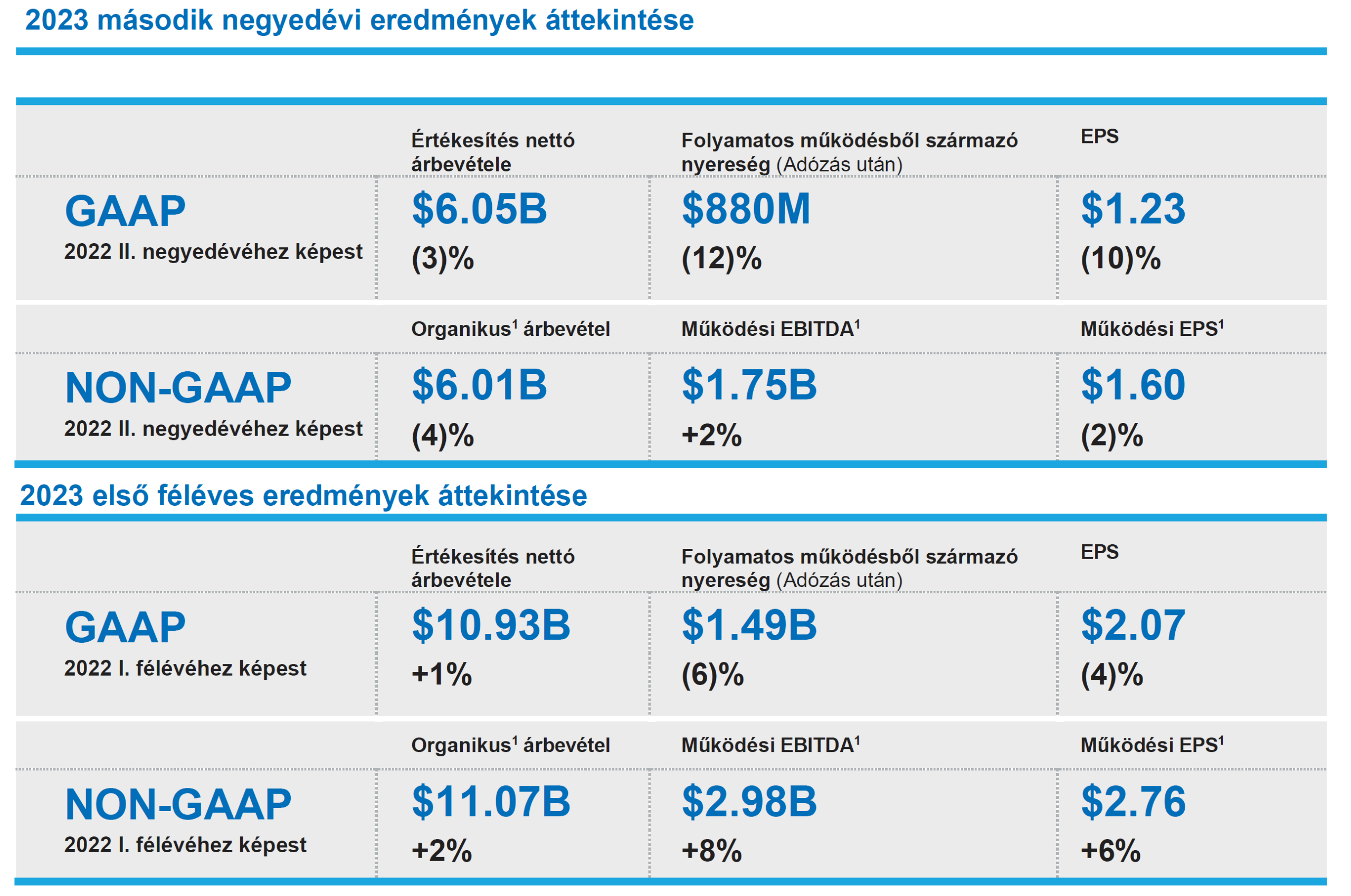 A 2023. június 30-án zárult második negyedévben a nettó árbevétel 3%-kal csökkent az előző év azonos időszakához képest. Az organikus értékesítés 4%-kal csökkent.