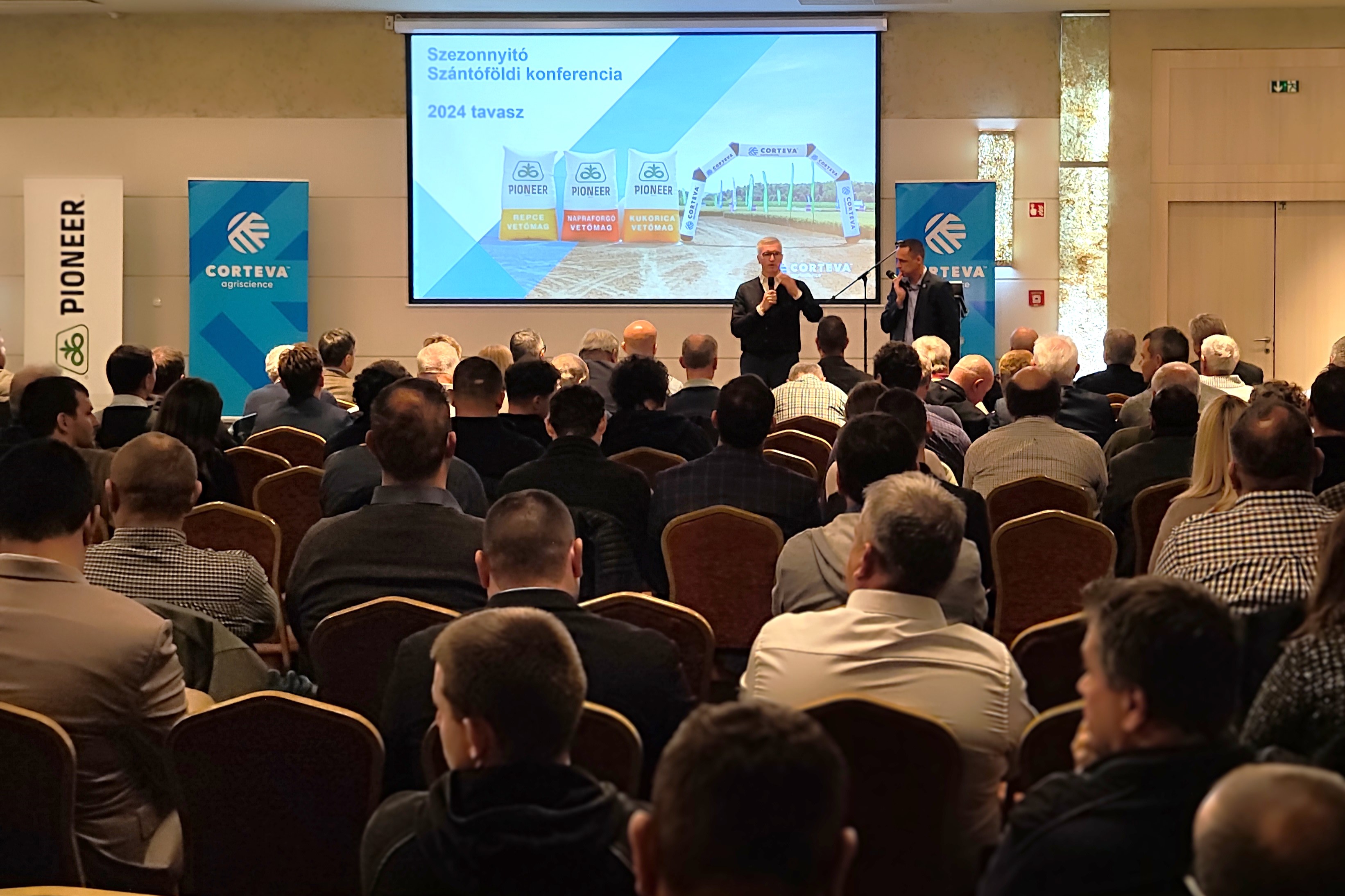 A Corteva Agriscience mezőgazdasági vállalat idén ősszel három magyarországi helyszínen - Siófokon, Lakiteleken és Debrecenben - tartotta szezonnyitó konferenciasorozatát, ahol több mint 500 gazdálkodó kapott információt a vállalat 2024-es tavaszi vetőmag portfóliójába érkező legújabb kukorica- és napraforgó hibridekről, valamint növényvédelmi megoldásairól és a Corteva nemrég engedélyezett biostimuláns termékéről.
