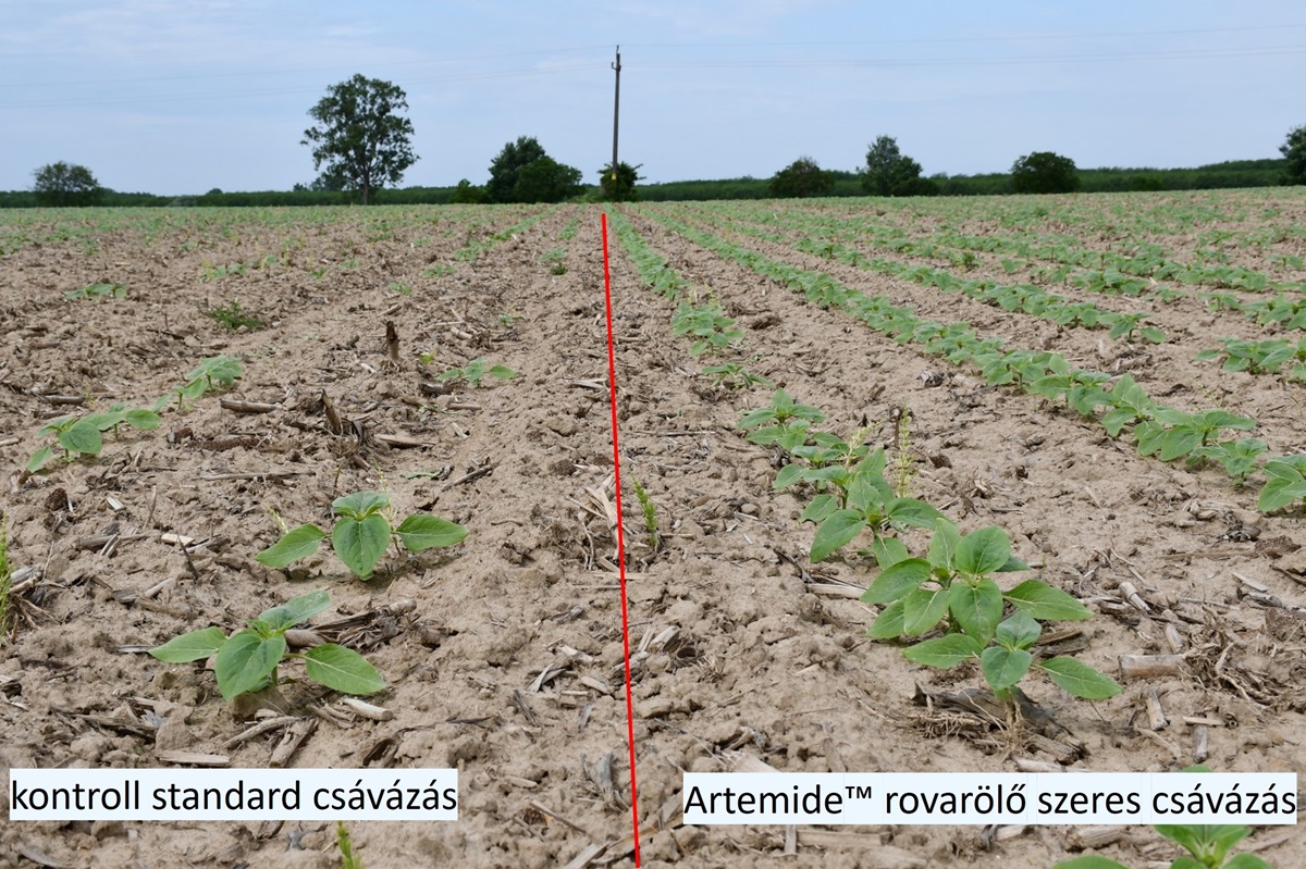 Magyarországon a gazdálkodók rendelkezésére áll a Corteva Agriscience, globális mezőgazdasági tudományos és technológiai vállalat által nemrégiben bevezetett új csávázási megoldás, az Artemide™. A termék lambda-cihalotrin hatóanyagot tartalmaz, amely hatékony védelmet nyújt a napraforgó és a kukorica korai károsítói, a drótférgek, pajorok, fritlégy és kukoricabogár lárva ellen is. A Corteva 2023-ban és 2024-ben Magyarországon, összesen 14 helyszínen, országszerte végzett kísérleteinek eredményei azt mutatták, hogy az Artemide™ rovarölő szerrel kezelt napraforgómagok termőképessége jelentősen javult. A kelést követően hektáronként 35,5%-kal csökkent a tőpusztulás mértéke, illetve 24,6%-kal kevesebb volt károsított tövek aránya. Ez hektáronként 6%-kal több egészséges növényt eredményezett, a kontroll standard fungicides csávázáshoz képest, azonos vetett tőszám esetén. Ez a jelentős növekedés, a napraforgóban hektáronként átlagosan mintegy 3000 darabbal több egészséges növényt jelentett hektáronként, amely a betakarításkor átlag nettó 151 kg/ha terméstöbbletet eredményezett a kísérletben részt vevő partnereknél. Ez az eredmény hozzájárul ahhoz, hogy a magyar gazdák termelékenyebbek legyenek és megőrizzék jövedelmezőségüket.