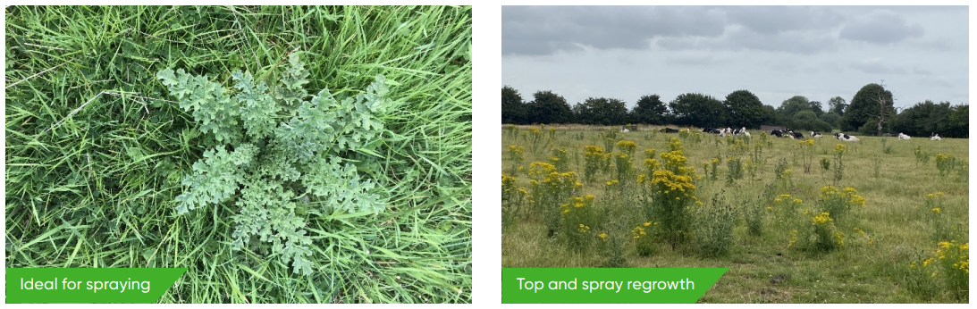 When seedling weeds that have gone beyond the optimal growth stage for treatment, or where particularly docks are re-establishing from root fragments rather than seed, then use ‘ground cover’ to assess the feasibility of making an application of Forefront T at the higher rate of use available for established grassland.