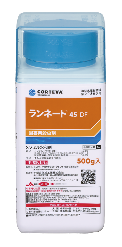 ![]() | ランネート™45DF | 春夏防除で有効。卵・若齢幼虫発生期に防除する。 |