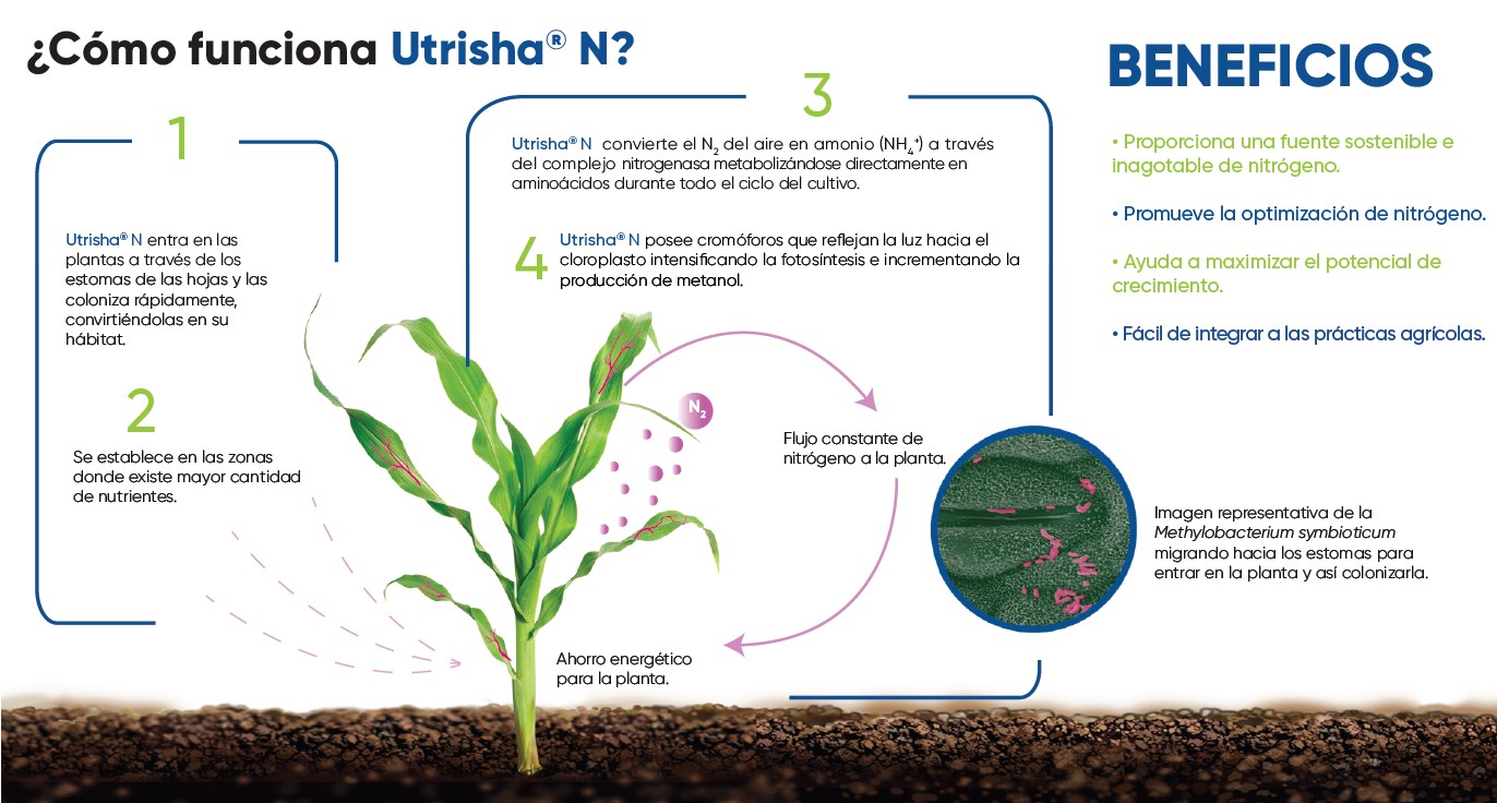 Utrisha® N El primer bioestimulante optimizador de nitrógeno de máxima eficacia. Desarrollado para el aporte de fertilización nitrogenada biológica, contribuyendo a una agricultura más rentable y sostenible.
