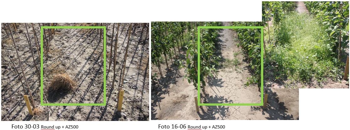 Fruittelers gaan in de komende periode voor volledige bestrijding van onkruiden op de zwartstrook. Enerzijds om deze onkruidvrij te houden en anderzijds om ongedierte geen beschutting te bieden. Sommige telers kiezen ervoor om de zwartstrook enkel zuiver te zetten met Roundup. Deze behandeling heeft geen duurwerking tegen kiemende onkruiden. Als men aan deze toepassing AZ500 toevoegt geeft deze ook een duurwerking op kiemende onkruiden. AZ500 bestrijdt een breed spectrum aan kiemende onkruiden en heeft een lange duurwerking.