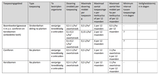 AZ500 (eventueel in combi met Kerb Flo) heeft een breed werkingsspectrum op breedbladige onkruiden. Er zijn geen restricties waardoor het jaarrond toegepast mag worden. Afgelopen zomer heeft AZ500 nog een NLKUG uitbreiding gekregen met o.a. een split toepassing voor boomkwekerijgewassen. De maximale hoeveelheid per jaar (0,5 l/ha) blijft staan maar deze mag eventueel wel verdeeld worden in meerdere toepassingen.