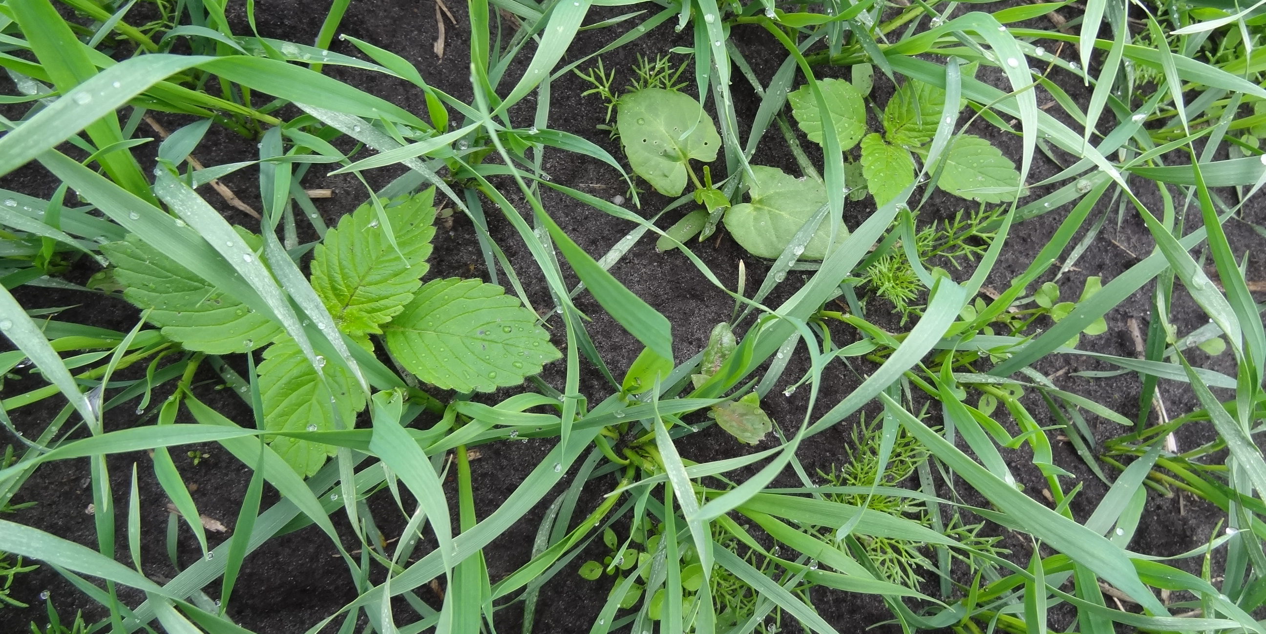 Foto: Enkele veel voorkomende onkruiden in zomergraan: hennepnetel, zwaluwtong, muur, kamille, perzikkruid. Andere veel voorkomende onkruiden in zomergraan zijn bijvoorbeeld melganzevoet, kleefkruid, aardappelopslag etc..