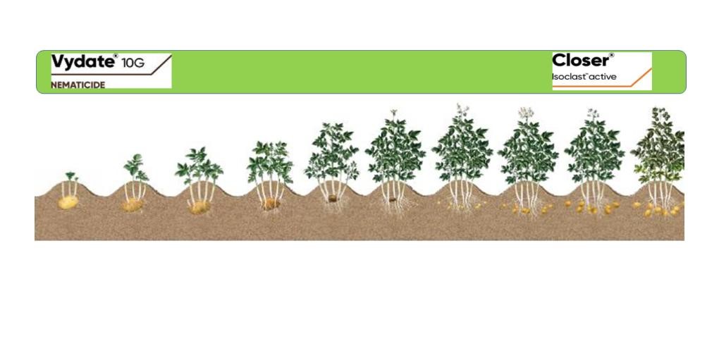 Vydate 10G wordt systemisch opgenomen door de plant en beschermt ook tegen luis de eerste weken na opkomst van het gewas. Een invliegende luis die het gewas aanprikt zal doodgaan door opname van de actieve stof. De Vydate 10G toepassing geeft daarmee een basisbescherming aan de opkomende aardappelplanten. Voor een maximale bescherming direct rondom opkomst van het gewas is het aan te bevelen om Vydate 10G aan de basis toe te passen.