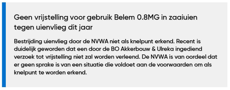 Recent besluit over de door de sector aangevraagde vrijstelling voor Belem 0.8MG in uien tegen uienvlieg :