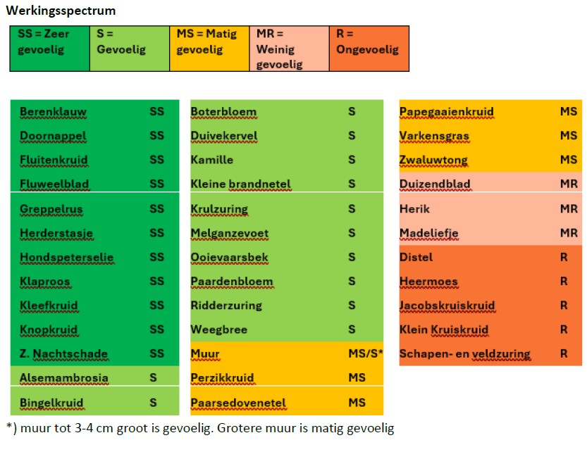 Proclova bestaat uit 2 actieve stoffen, Amidosulfuron en de nieuwe actieve stof Rinskor.
