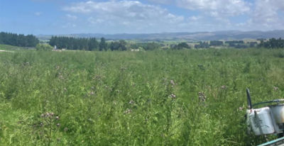 Mark hopes the pilot program will help him achieve tidy paddocks, with effective control of the worsening Cali thistle issue. Corteva Agriscience New Zealand supports farmers like Mark by offering innovative solutions and expertise to help overcome agricultural challenges and promote sustainable land health.