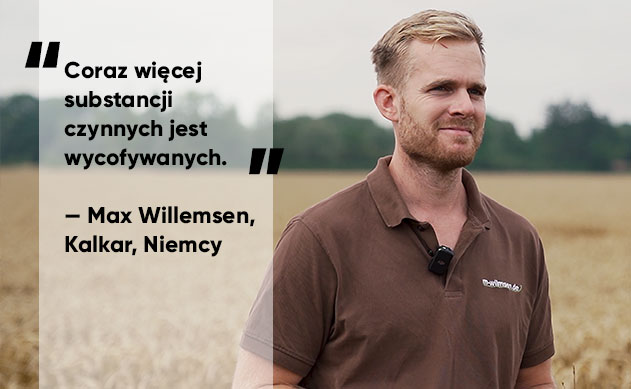 W Kalkar w Niemczech Max Willemsen uprawia zboża oraz rzepak przeznaczony na materiał siewny. „Najważniejsze jest czyste pole, ponieważ rolnicy, którzy później wysiewają nasze nasiona, nie chcą siać żadnych chwastów” – wyjaśnia.