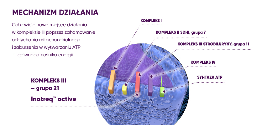 Inatreq™ active działa w innym miejscu cyklu oddechowego patogena niż dostępne na rynku fungicydy – to nowe narzędzie do zarządzania odpornością.