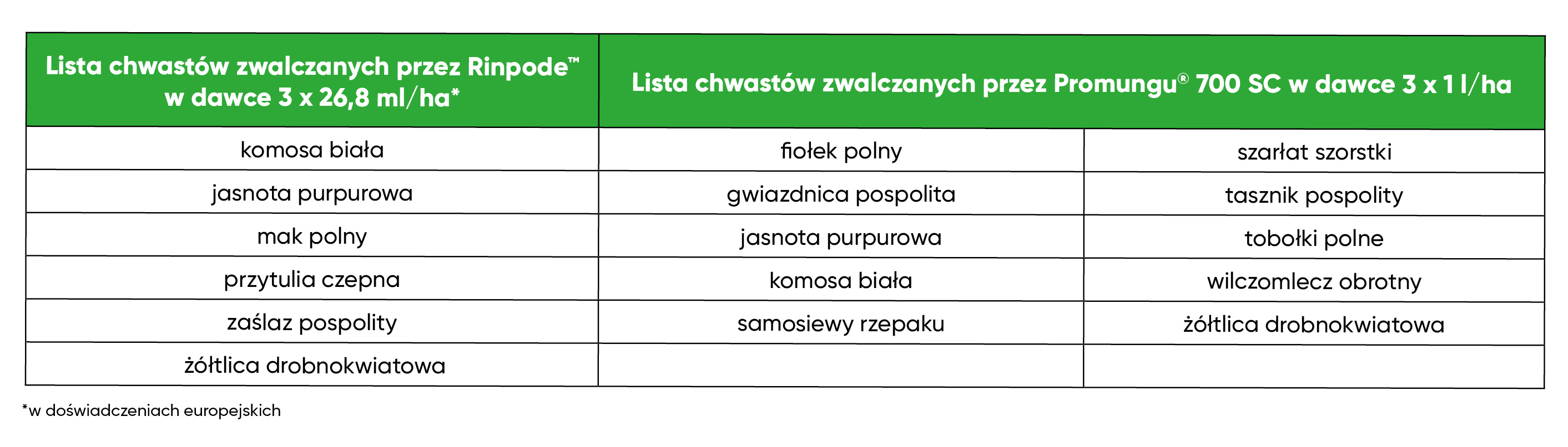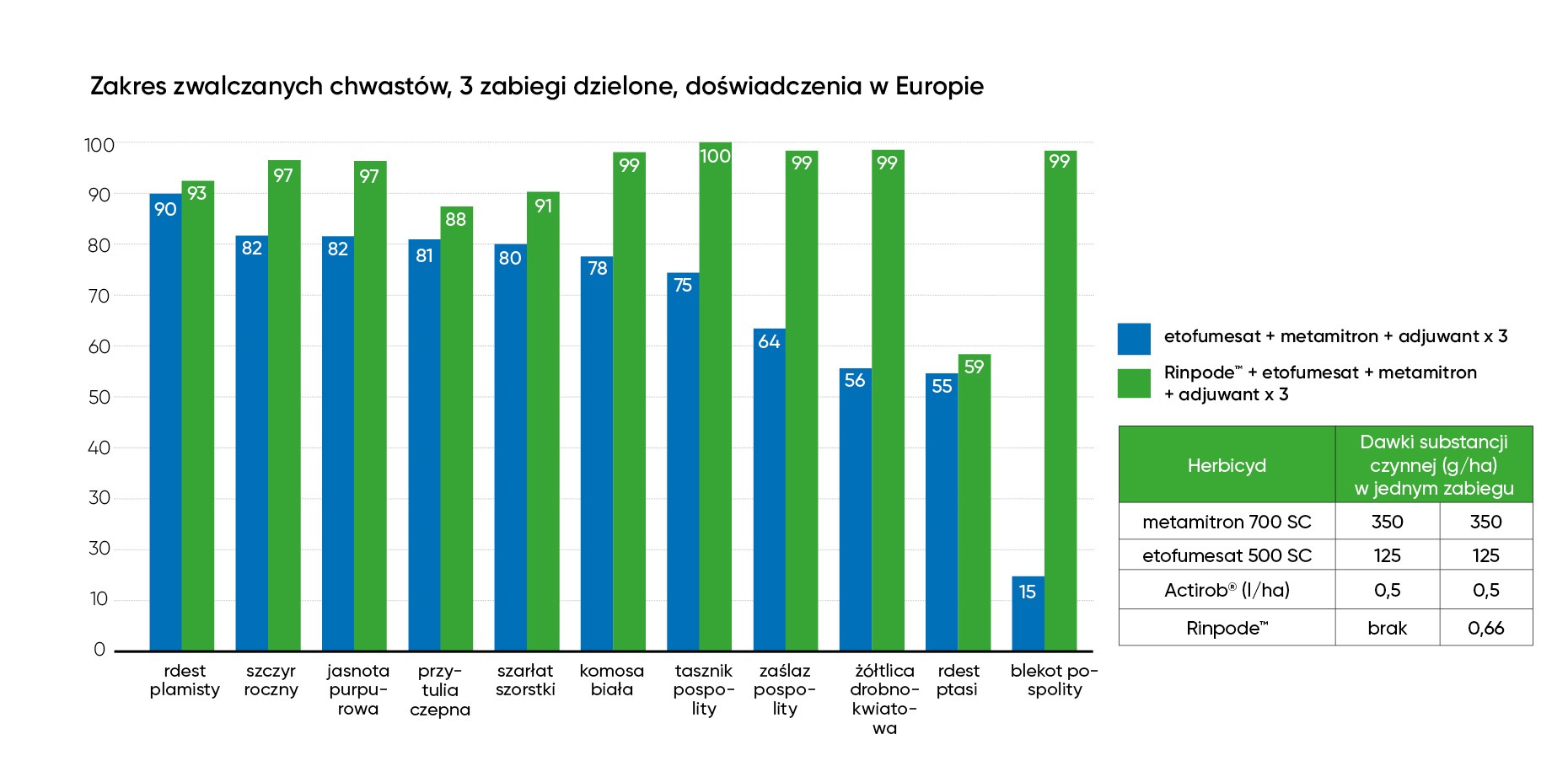 4. Partner do tworzenia mieszanin zbiornikowych z innymi środkami do zwalczania chwastów dwuliściennych - możliwość mieszania z innymi herbicydami. (np. etofumesat, fenmedifam, lenacyl)