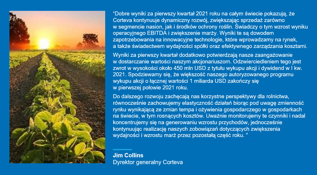 “Dobre wyniki za pierwszy kwartał 2021 roku na całym świecie pokazują, że Corteva kontynuuje