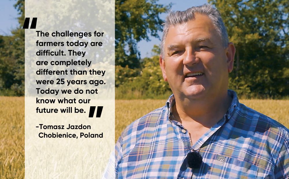 Tomasz Jazdon, a farmer in Chobienice, Poland, said, “The challenges for farmers today are difficult. They are completely different than they were 25 years ago. Today, we do not know what our future will be. We are currently struggling for the profitability of our production. The economy has changed tremendously. The future is precisely about production and cost optimization. Farms need to be bigger, more effective and more efficient.”