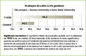 • Estabilidade aeróbica da silagem cerca de 25% superior comparativamente a silagem não inoculada.