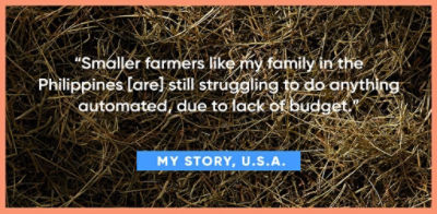 For inclusion, what areas is agriculture lagging in most? Where are you seeing progress? I still see that automation/ digital is not there yet, although I see the effort that the industry is making to get there. Smaller farmers like my family in the Philippines [are] still struggling to do anything automated due to lack of budget.