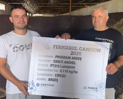 Un rezultat excepțional a oferit hibridul PT315 și în cadrul societății Prograin Argeș, acolo unde fermieri campioni au devenit domnii Ion și Cristi Anghel, obținând o producție de 5.110 kg/ha.