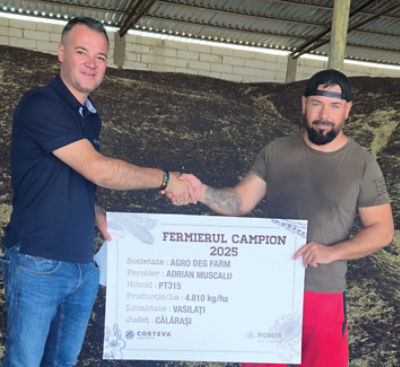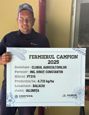 Primul fermier campion din această zonă este domnul Marian Mitran, societatea Lux Com, din localitatea Ileana, județul Călărași, un colaborator vechi al companiei, care obține constant rezultate excepționale. În anul agricol 2024-2025, cea mai bună producție i-a fost oferită de hibridul PT303, respectiv 5.400 kg/ha.