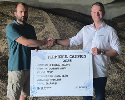În cadrul societății Elion Agro, din Călărași, fermier campion a devenit domnul Alexandru Chiriță, care a semănat hibridul PT315 și a obținut o producție de 3.950 kg/ha.