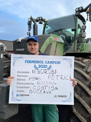 De departe, cea mai bună producție din județul Suceava a obținut-o fermierul Petrică Suruba, care a semănat pe 30 ha hibridul P9903, iar pe o parcelă de 7 ha a obținut o producție medie de 18.722 kg/ha. “Pentru zona noastră a fost un a foarte bun la cultura porumbului. Am semănat porumbul după rapiță, astfel că terenul a fost discuit, dezmiriștit și scarificat la 35-40 cm. În primăvară, la pregătirea patului germinativ, am fertilizat cu îngrășământ triplu 15, 250-270 kg/ha. Am semănat 64.000 b.g/ha în prima parte a lunii aprilie și am recoltat în jur de 60.000 plante. Cultura a primit două erbicide, iar în vegetație, atunci când porumbul avea în jur de 80 cm, am mai fertilizat cu 140-160 kg/ha de azot. Eu fertilizez atunci când plouă, chiar și noaptea, ca să nu ard plantele. Am fost norocoși pentru că am avut parte de precipitații, de la semănat până la recoltat chiar mai mult de 500 l/mp. Nu am mai aplicat nici foliar, nimic altceva. A fost primul an când am semănat P9903 și am fost foarte mulțumit. Am ales și pentru acest an hibrizi Pioneer®, printre care P9889, dar și P8834. Voi avea exclusiv hibrizii Pioneer® și erbicide din portofoliul Corteva și chiar vreau să mă ocup mult mai bine de tehnologie să vedem unde pot ajunge cu acești hibrizi”, a precizat fermierul campion. Acesta a mai declarat faptul că a semănat și hibrizi de rapiță din portofoliul companiei, iar în acest moment cultura arată impecabil. În cultura de grâu a administrat Pixxaro™ și rezultatele sunt pe măsura așteptărilor.