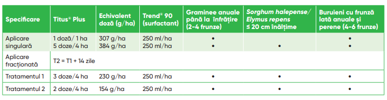 • Titus® Plus conferă eficienţă (eficacitate la un cost rezonabil) în combaterea buruienilor pe o perioadă lungă de timp.