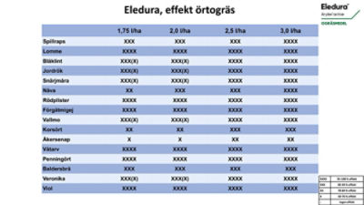 Eledura ingår under 2025 i försöksserien L5-3021 – en serie som fokuserar på bekämpning av örtogräs, med särskild inriktning på blåklint i höstvete, både under höst och vår.
