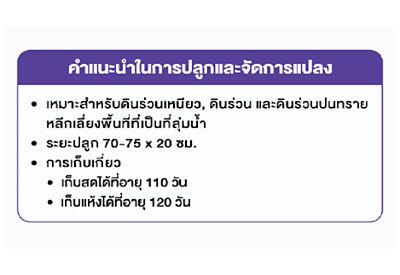 ควรปลูกให้ได้ระยะแถว 70-75 ซม. X ระยะต้น 20 ซม.
