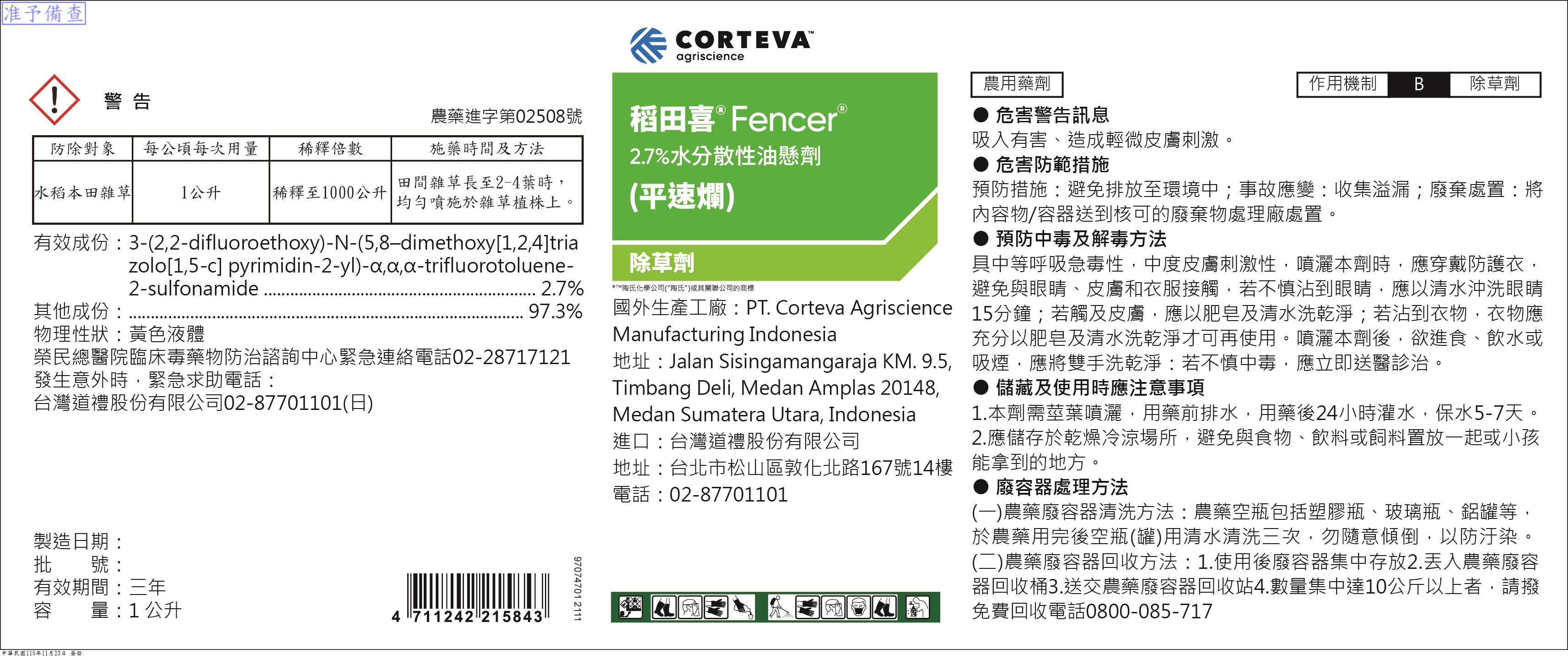 其有效成分平速爛的作用方式屬於B類除草劑,系統性的作用機制,針對水稻田主要雜草,包含稗草、一年生莎草及大部分的闊葉雜草均有效。