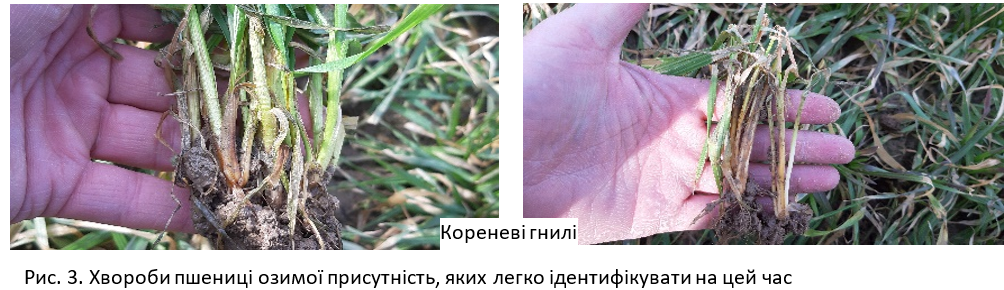 Також слід врахувати і те, що контроль прикореневих гнилей і профілактика кореневих можлива за умови обробки фунгіцидами у фазі кущення. При цьому важливо, щоб робочий розчин фунгіциду не тільки потрапив на листову поверхню, а й зволожив прикореневу зону і вузол кущення пшениці озимої. За дотримання такої вимоги ми дійсно зможемо проконтролювати прикореневі гнилі (церкоспорельозну (ламкість стебел) і ризоктоніозну), які активно розвиваються на ослаблених рослинах, та стримати прогресування кореневих гнилей (фузаріозну і гельмінтоспоріозну) на етапі, коли інфекція ще знаходяться на обгортках листків і не перейшли на стебло, вузол кущення.