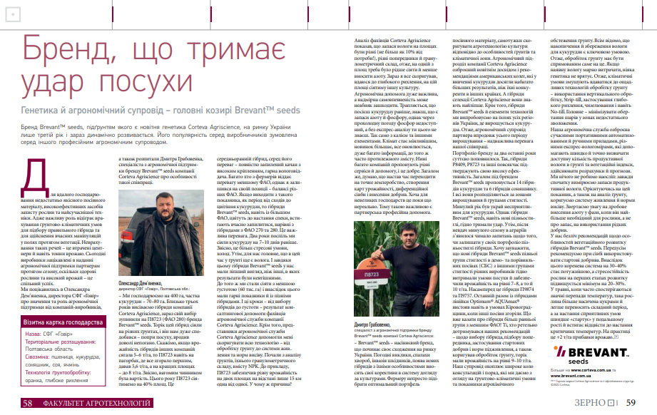 Бренд Brevant™ seeds, підґрунтям якого є новітня генетика Corteva Agriscience, на ринку України лише третій рік і зараз динамічно розвивається. Його популярність серед виробничників зумовлена серед іншого професійним агрономічним супроводом.