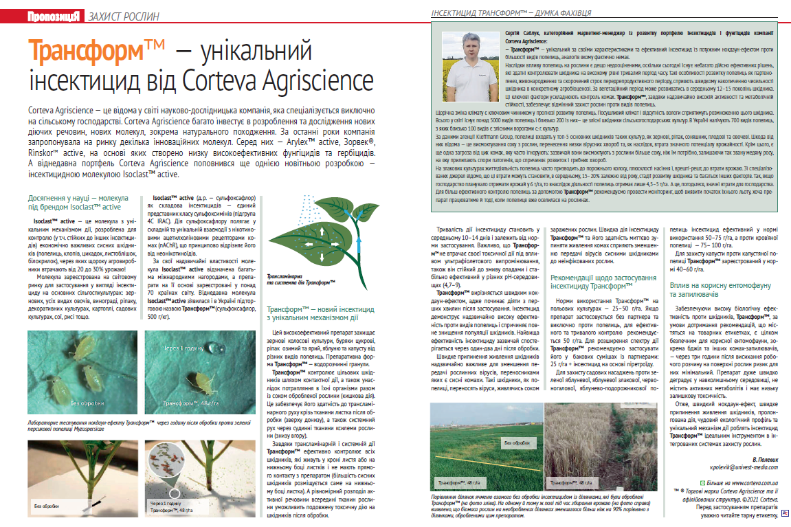 Трансформ™ (Isoclast™ active) — унікальний інсектицид від Corteva Agriscience