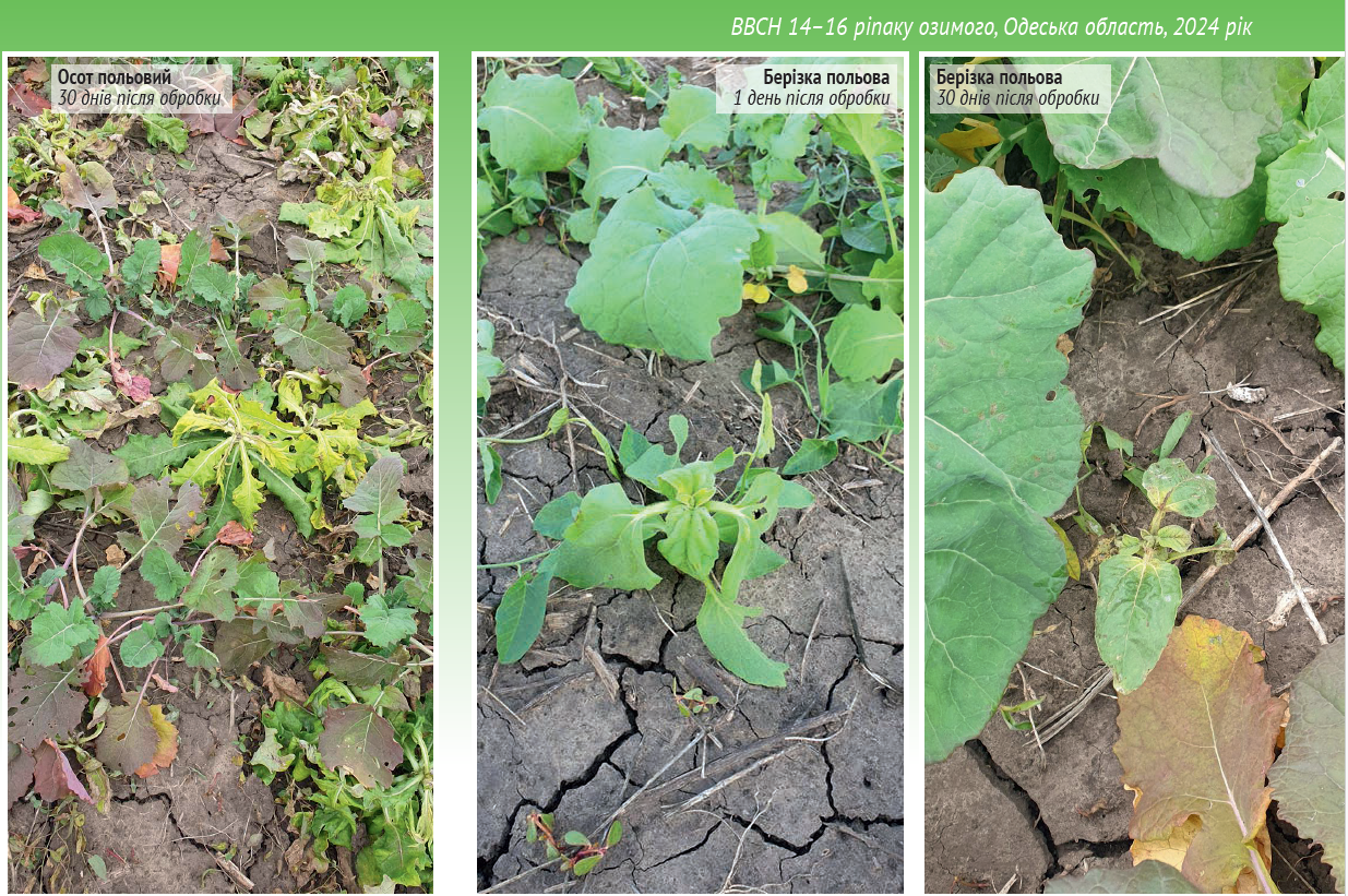 Для боротьби з бур'янами в посівах ріпаку озимого використовують як ґрунтові, так і страхові гербіциди. Однак післясходове застосування гербіцидів восени має низку переваг, серед яких – можливість точного вибору гербіциду залежно від видового складу бур'янів, уникнення неоднозначної дії препарату через відсутність вологи та гнучкість у термінах використання продукту. Саме післясходове застосування гербіцидів є запорукою ефективнішого використання потенціалу продуктів у боротьбі з бур'янами.