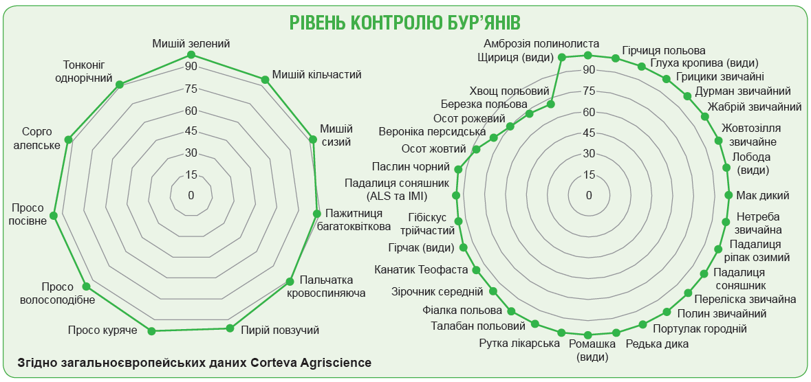 Невідʼємною частиною сучасних технологій захисту кукурудзи є боротьба з бур’янами. Їхня шкодочинність у посівах кукурудзи надзвичайно висока: навіть незначна кількість на 1 м2 може знизити врожайність культури на 25–40%, а за вкрай несприятливих умов цей показник може сягати 60–80%, не кажучи вже про додаткові витрати, зумовлені нераціональним використанням ресурсів (добрив, посівного матеріалу, води тощо). Основною причиною забур’янення є засміченість ґрунту насінням бур’янів (так, насіння гірчаку берізковидного зберігає здатність до проростання в ґрунті до 10 років). Залежно від ґрунтово-кліматичних умов вирощування кукурудзи, в межах одного поля може налічуватися більш як 20 видів бурʼянів, серед яких найбільш шкодочинними є злакові: види мишіїв, просо куряче, просо волосоподібне, пирій повзучий тощо, а також однорічні та багаторічні двосім’ядольні, такі як амброзія полинолиста, лобода біла, види щириці, гірчак берізковидний, гірчак почечуйний, гірчак звичайний (спориш), берізка польова, види осотів, канатник Теофраста, паслін чорний, ваточник сирійський та інші. Окремо слід відзначити падалицю соняшнику різних технологій вирощування. Поява тих чи інших видів бурʼянів на конкретному полі зумовлена низкою чинників, зокрема типом ґрунту та його властивостями, кліматичними умовами, попередником, технологією обробітку ґрунту перед сівбою і під час захисту посівів тощо. Залежно від обраної стратегії захисту посівів кукурудзи агровиробники використовують як ґрунтові, так і страхові гербіциди. Однак з огляду на зміни клімату вони все частіше віддають перевагу страховій схемі захисту або ж комбінованій. Перевагою післясходового застосування гербіцидів є можливість вибору продукту залежно від видового складу бур’янів у посівах, що уможливлює розширення спектра контрольованих бур’янів і зменшення залежності від вологи в ґрунті.