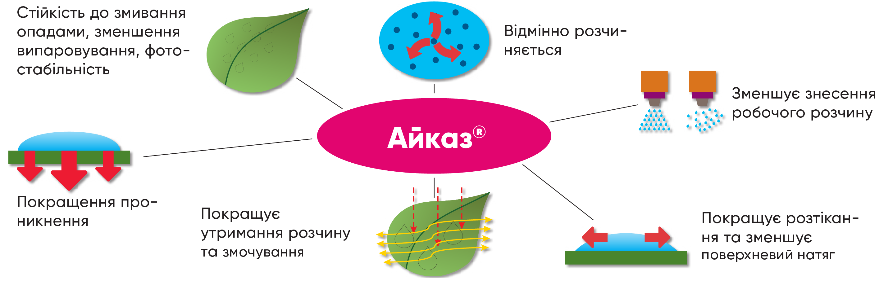 - Айказ® може використовуватись як при наземному, так і при авіаційному обприскуванні.
