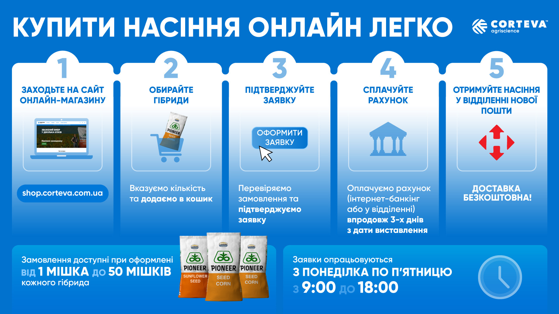 ✔️ Швидко та зручно: замовте потрібні гібриди кукурудзи та соняшника в декілька кліків.
