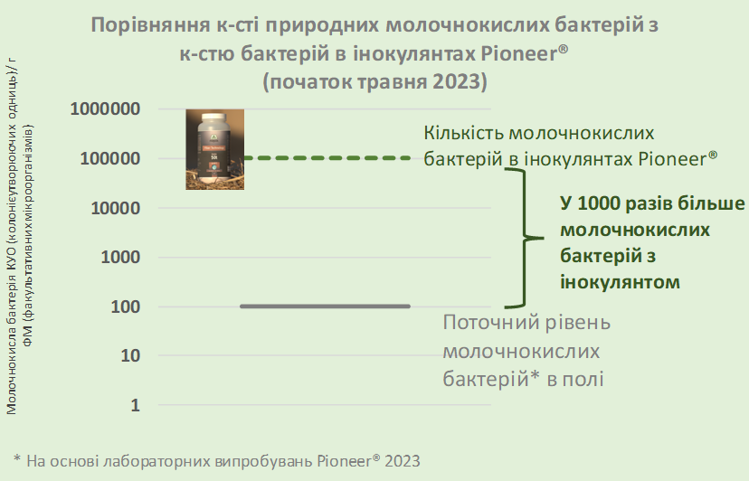 Через низьку кількість природних молочнокислих бактерій експерти Pioneer рекомендують використовувати силосні добавки, що містять гомоферментативні бактерії, які зменшать ризик маслянокислого бродіння та високого розпаду білка.