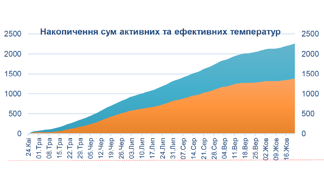 Усього від моменту посіву до збирання накопичилося 1375 С Ефективних Температур (СЕТ) та 2258 С Активних Температур (САТ)