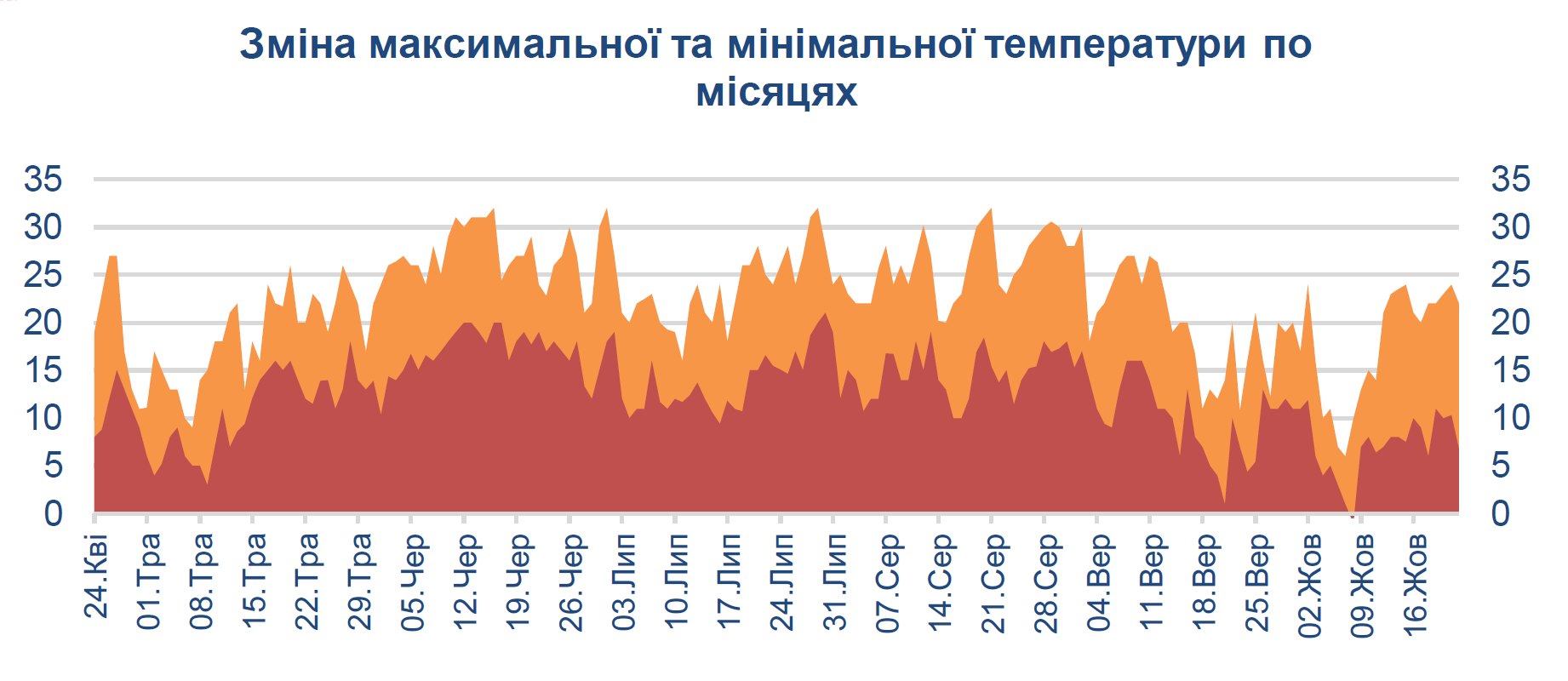 Як видно з діаграми, температура повітря під час посіву була оптимальною;