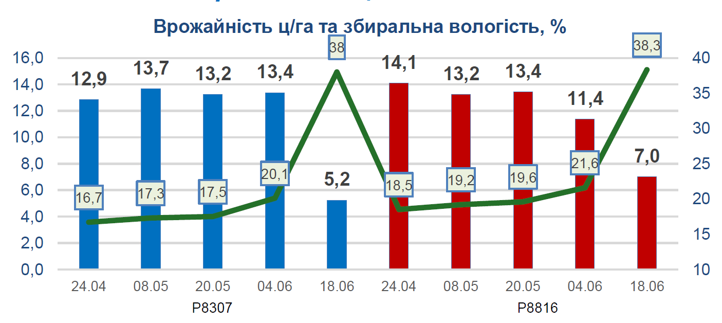 Гібрид Р8816 краще реагує на ранній термін посіву, що підтверджує результати PST-тесту;