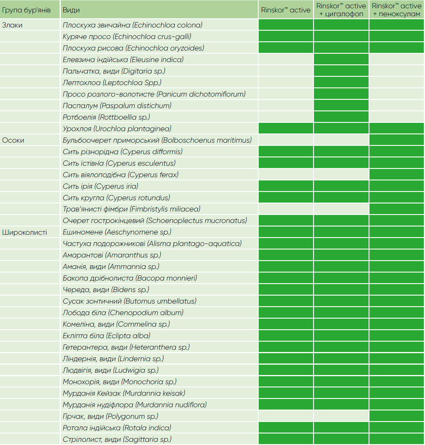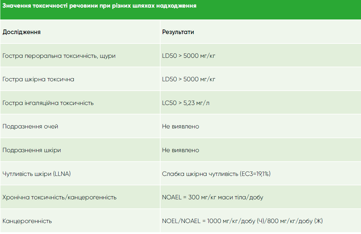 Екотоксикологія Використання гербіциду Rinskor™ active має важливе значення не лише з точки зору екологічного рослинництва, за умови розумного використання, мета даної розробки також сприяти збереженню середовища існування та видового різноманіття, дозволяючи фермерам раціонально використовувати землю, яку вони обробляють. За своїм екотоксикологічним профілем Rinskor™ active відповідає вимогам безпечності, оскільки речовина не проявляє токсичності як для наземних, так і для водних тварин. Значення токсичності Rinskor™ active для птахів становили LD50 > 2255 мг/кг м.т./день, NOEC=1000 мг/ кг корму. Речовина також не виявляє токсичного ефекту для медоносних бджіл (LD50 при пероральному та кон- тактному надходженні >100 мкг/бджолу).