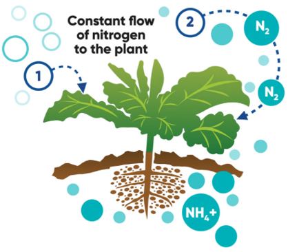 BlueN provides a unique way to enable plants to capture nitrogen thoughought the season.
