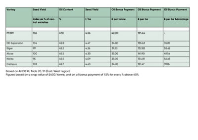 PT299 has been chosen as a Candidate for the AHDB Recommended List East/West region because of its true agronomic merit. High seed yields, an exceptional 47% oil content and robust stem canker resistance all combine to give growers a high yield with the promise of the highest oil bonus possible from your grain merchant.