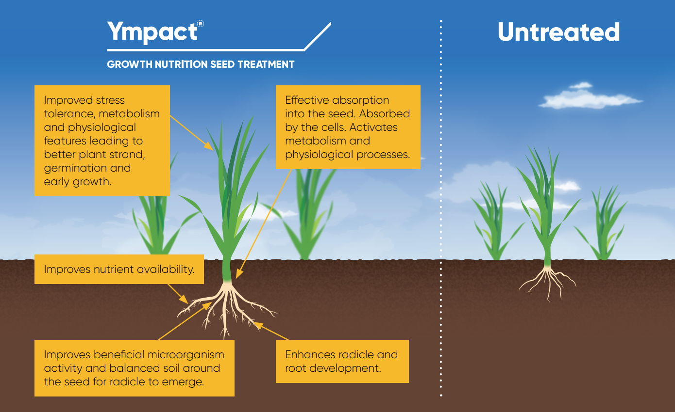 Inspired by nature, Ympact® is a novel biostimulant seed treatment which enhances seedling growth by optimising metabolic processes and abiotic stress tolerance.