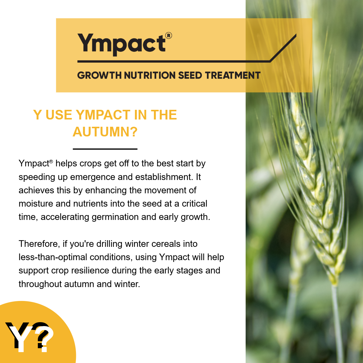 Getting crops off to the strongest possible start is vital for securing yield and resilience later in the season. From the moment a seed is drilled, it needs quick access to moisture and nutrients to power germination and establish evenly - but conditions in autumn are often far from ideal. That’s where Ympact comes in.