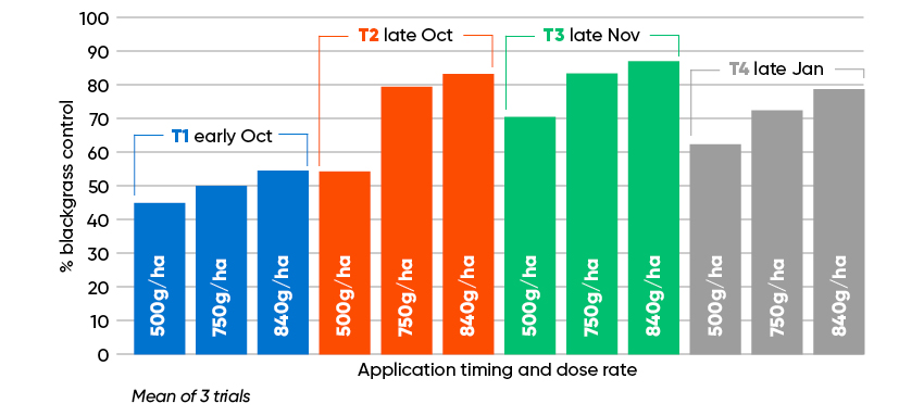 It is important to get a good residual layer for robust control. It’s a balance – the conditions need to be right – but if you wait too long and the blackgrass plants are too big it can give poorer results.