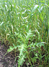 Canada thistle has a competitive advantage because its deeper roots capture moisture the grain can’t reach. Soil also receives full sunlight amid sparse wheat stands.