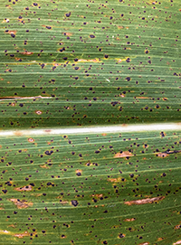 With its very limited history in the U.S., much remains to be learned about the long-term economic importance of this disease and best management practices. The pathogen that causes tar spot overwinters in corn residue but to what extent the amount of residue on the soil surface in a field affects disease severity the following year is unknown. Spores are known to disperse up to 800 feet, so rotation or tillage practices that reduce corn residue in a field may be negated by spores moving in from neighboring fields. Observations so far suggest that rotation and tillage probably have little effect on tar spot severity.